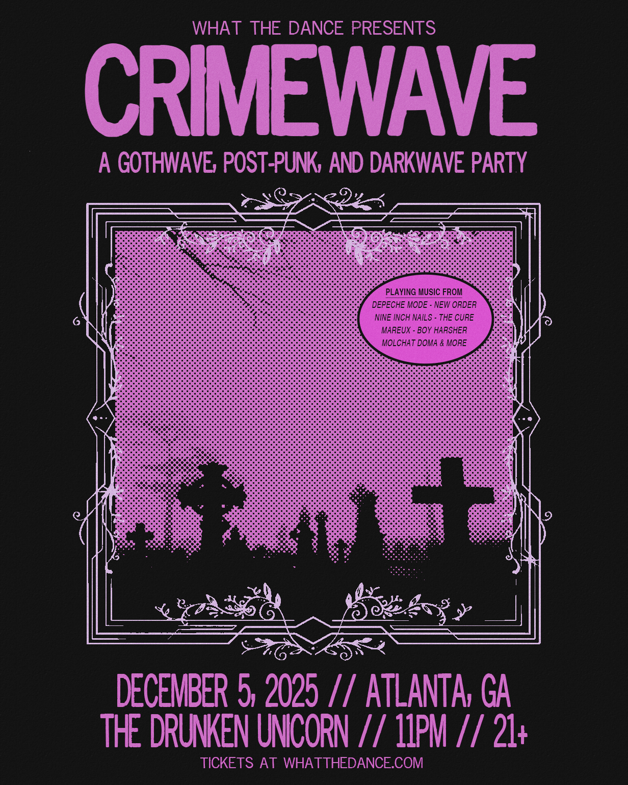 Atlanta! Dive into the shadows and lose yourself to CRIMEWAVE - a night of your favorite gothwave, darkwave, new wave, post-punk, and industrial music