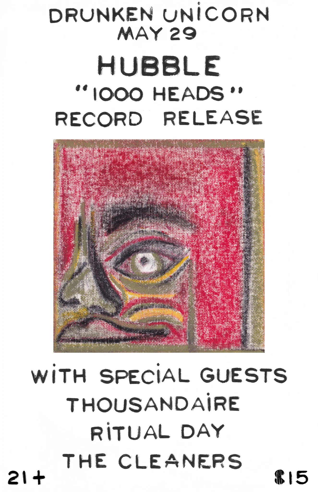 You should be already very familiar with the band Hubble. A band so unique within the slew of bands in the city, that those who have experienced it hold a bond that is inexplicable to someone that has not had their scalp peeled back by the Atlanta’s loudest band. If you weren’t already acquainted 1000 Heads turn to greet you and welcome you to the club. This album is a manifold of the chemical bonds (synergetic or otherwise) that flow between the members and allow them to scientifically craft something that stands on its own feet. There is no specific reference point, there is no stolen riff, there is no leaning on their peers. There is blood, sweat, and tears. More than most can say. You should be already very familiar with the band Hubble, but if you aren’t now: you will be on May 29th." - Lucky Hunter